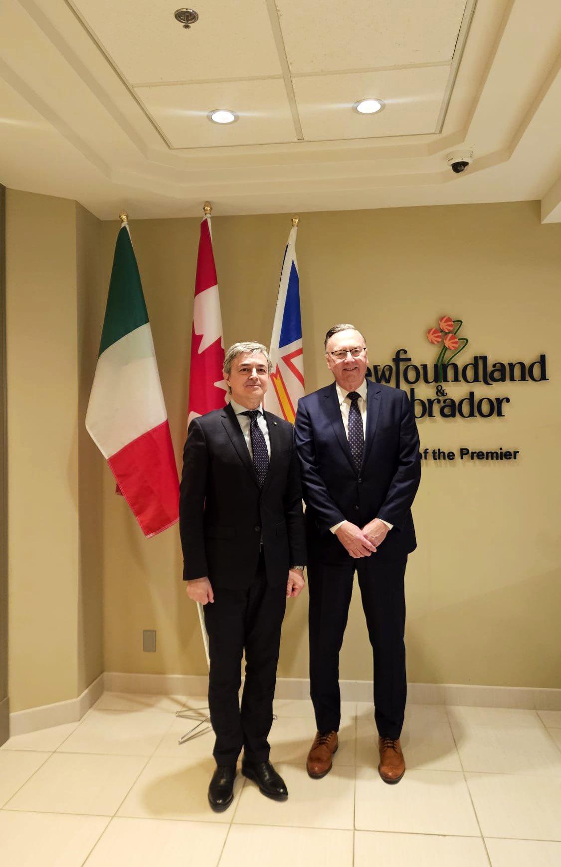 Dal 15 al 17 marzo l’Ambasciatore d’Italia in Canada, Alessandro Cattaneo, si è recato in visita ufficiale nella Provincia atlantica di Newfoundland e Labrador. La missione si è svolta, come la precedente in Nova Scotia, in concomitanza con il passaggio della Fregata della Marina Militare Italiana “Alpino” dal porto della capitale St. John’s.